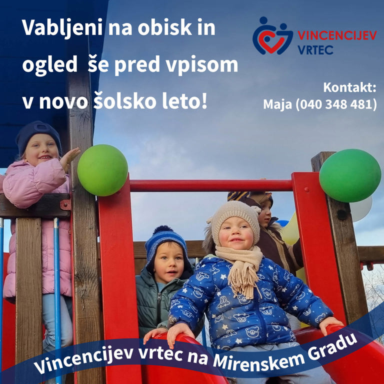 Vincencijev vrtec deluje na Mirenskem Gradu, v prvem nadstropju Marijinega doma. Za gibanje na prostem so vrtcu na razpolago igrala, vrtovi, vinogradi, parki in sprehajalne poti.